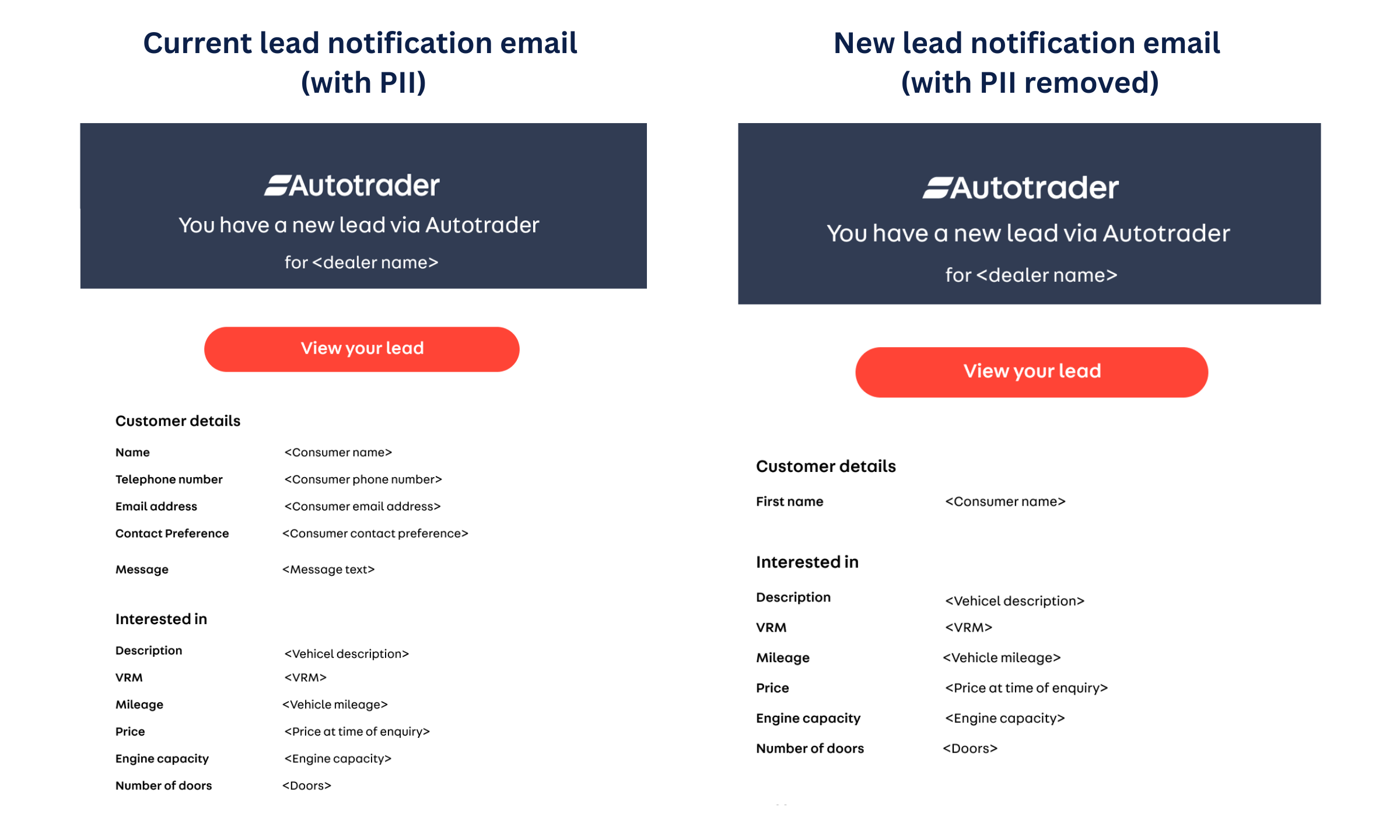 From the end of October, lead notification emails will no longer include personally identifiable information (PII) such as customer names, email addresses, telephone numbers, or message content.