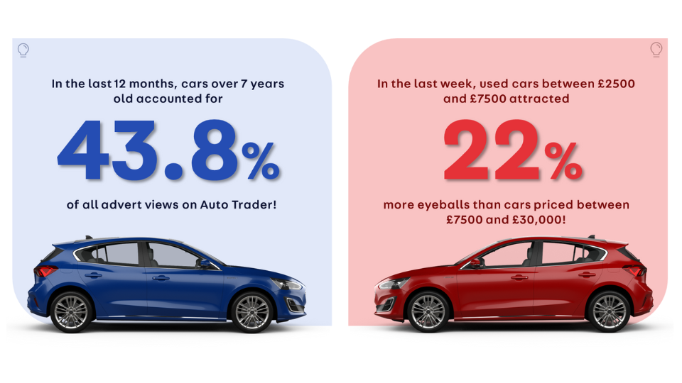 A common misconception among retailers is that Auto Trader's audience is primarily interested in newer vehicles. However, data shows that older stock performs just as well, if not better, than younger stock. In fact, cars over seven years old accounted for 43.8% of all advert views on Auto Trader in the last 12 months. This challenges the assumption that only newer cars attract attention.